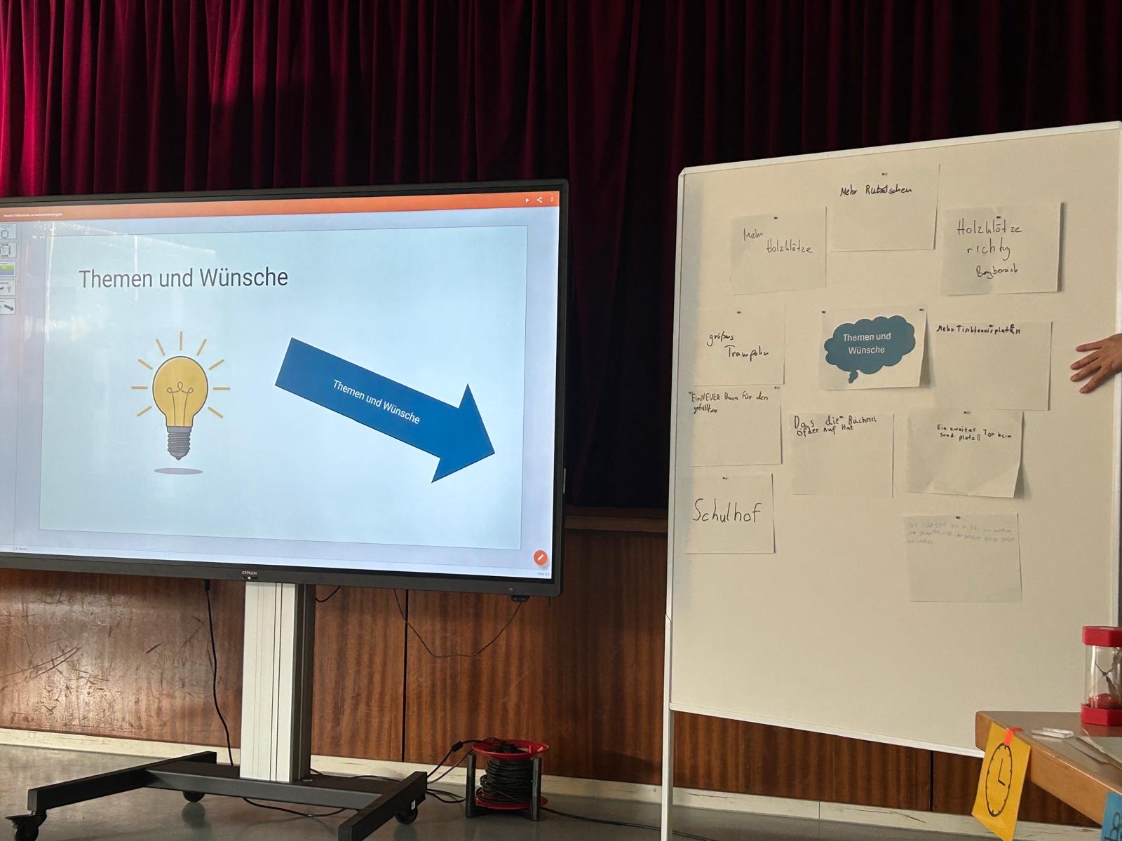 Im Rahmen der Kinderkonferenz haben unsere Schülerinnen und Schüler die Möglichkeit, sich auf Schulebene über ihre eigenen Anliegen auszutauschen. Die Themen, Ideen und Wünsche dafür werden vorab im Klassenrat gesammelt, in der KiKo-Box aufbewahrt und dann auf der Kinderkonferenz von den Klassensprecherinnen und Klassensprechern vorgestellt. So können sich die Kinder mit ihren Anliegen aktiv in das Schulleben einbringen und mitentscheiden. In der Vergangenheit wurden auf diese Art und Weise bereits mehrere Klettergerüste und Spielsachen angeschafft. Auch über die Regeln in der Pausenhalle wurde in der KiKo gemeinsam diskutiert.
