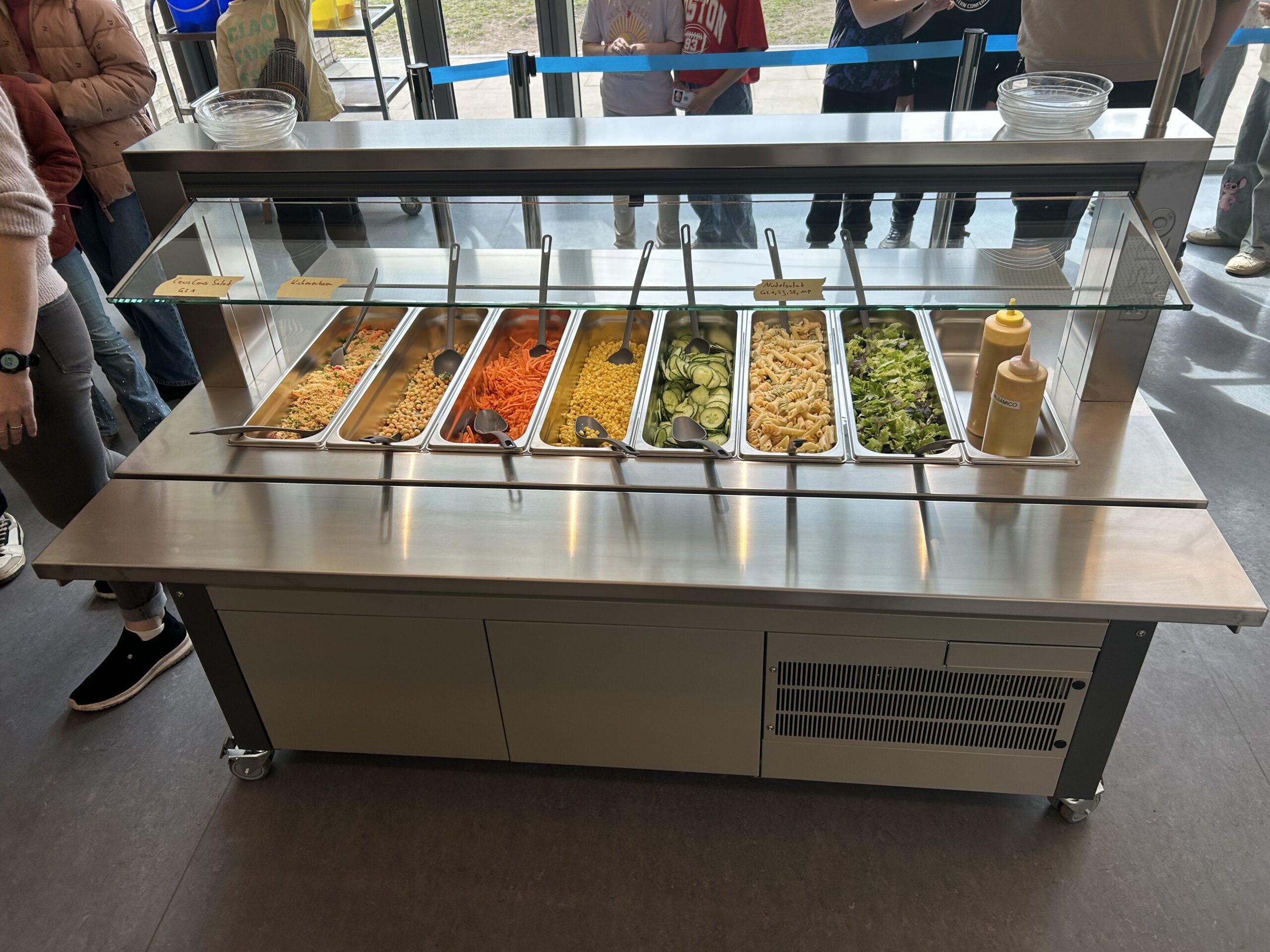 Der erste Tag war ein voller Erfolg: Die große Auswahl kam hervorragend an, die Kinder waren begeistert von den neuen Möglichkeiten und auch die Abläufe in der Essensausgabe verliefen reibungslos. Das Free-Flow-System bietet viele Vorteile: Die Kinder können selbst entscheiden, welche Komponenten sie essen möchten und in welcher Kombination sie ihr Mittagessen zusammenstellen. Dadurch wird nicht nur die Selbstständigkeit gefördert, sondern auch ein bewussterer Umgang mit Lebensmitteln unterstützt. Die ansprechende Präsentation der Speisen steigert zusätzlich die Freude am Essen und motiviert dazu, Neues auszuprobieren. Wir freuen uns sehr über die positive Resonanz und darüber, unseren Schülerinnen und Schülern mit dem neuen Konzept ein modernes, attraktives und zeitgemäßes Verpflegungsangebot bieten zu können.