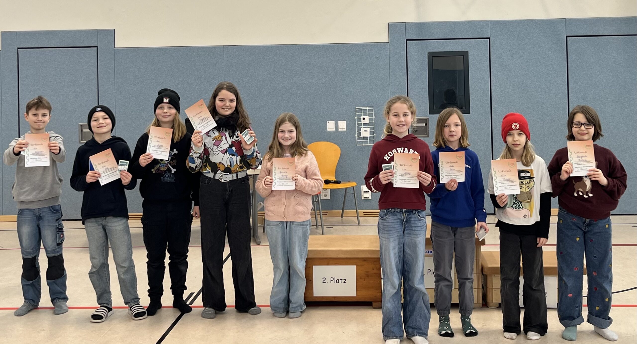 Zweimal im Jahr nehmen alle motivierten Dritt- und Viertklässler und – klässlerinnen der Adolph-Schönfelder-Schule am bundesweiten HEUREKA-Wettbewerb teil. Im November 2025 stellten sich rund 115 Schülerinnen und Schüler spannenden Fragen zum Thema „Mensch und Natur“. Im Februar wurden die Preise und Urkunden feierlich in der Turnhalle bzw. Aula überreicht. Alle Teilnehmenden erhielten eine Urkunde und ein Kartenspiel. Der nächste HEUREKA-Wettbewerb findet im Mai 2026 statt. Dann dreht sich alles um das Thema Weltkunde mit Fragen aus Erdkunde, Geschichte, aktuellem Weltgeschehen und gesellschaftlichem Grundwissen.